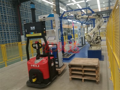 CNG加气机自动装配线激光AGV叉车及机器人自动上线